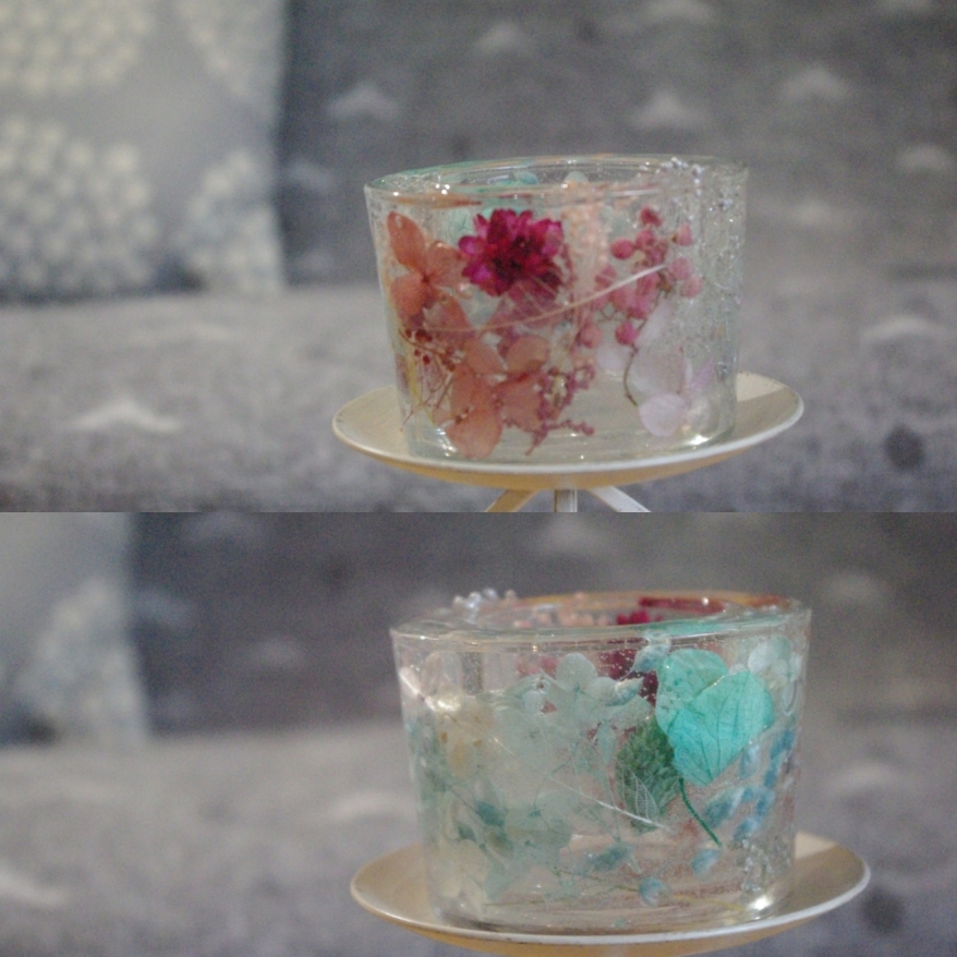 そしてこちらも別の生徒様のレッスン。ボタニカルガラスランタン。